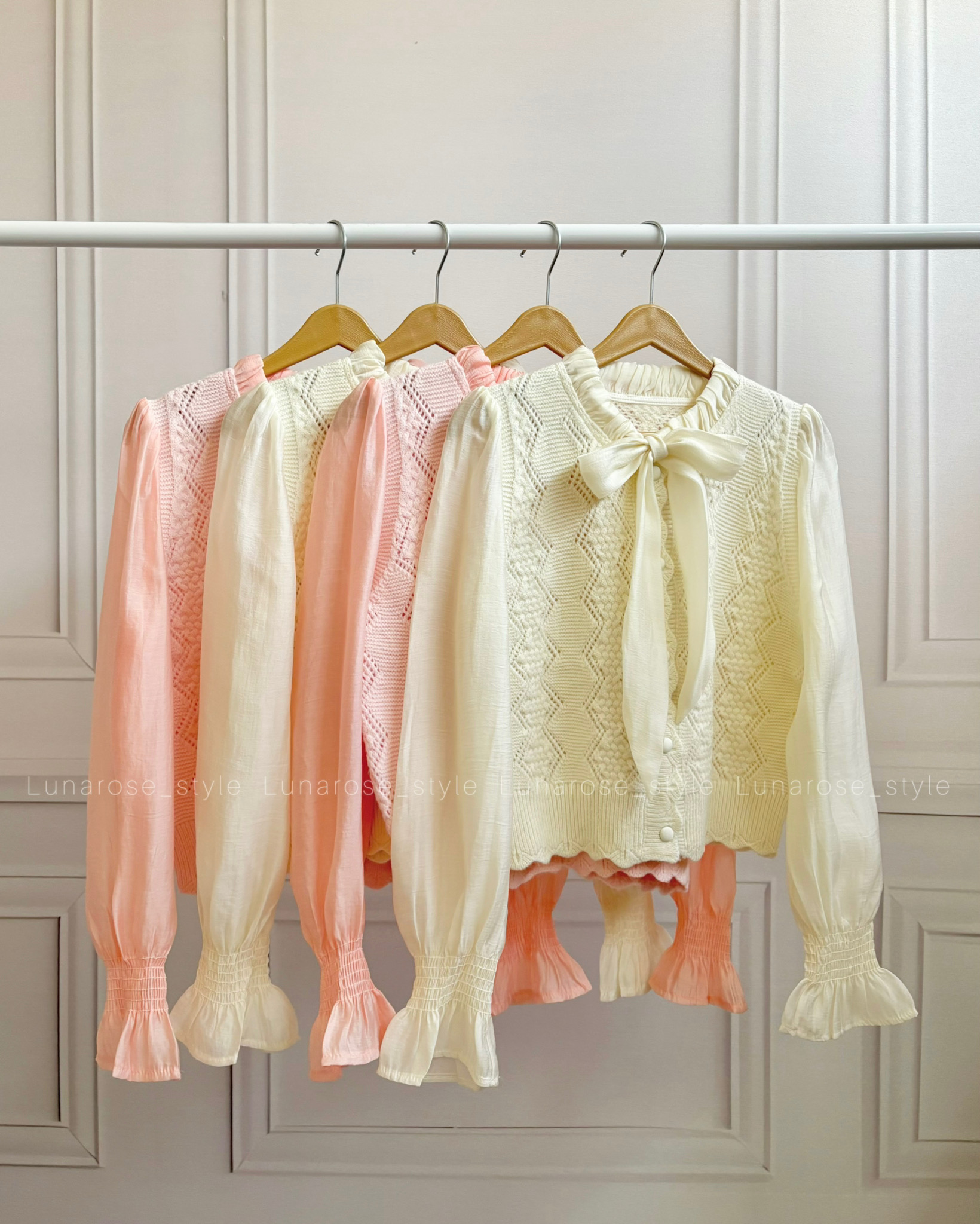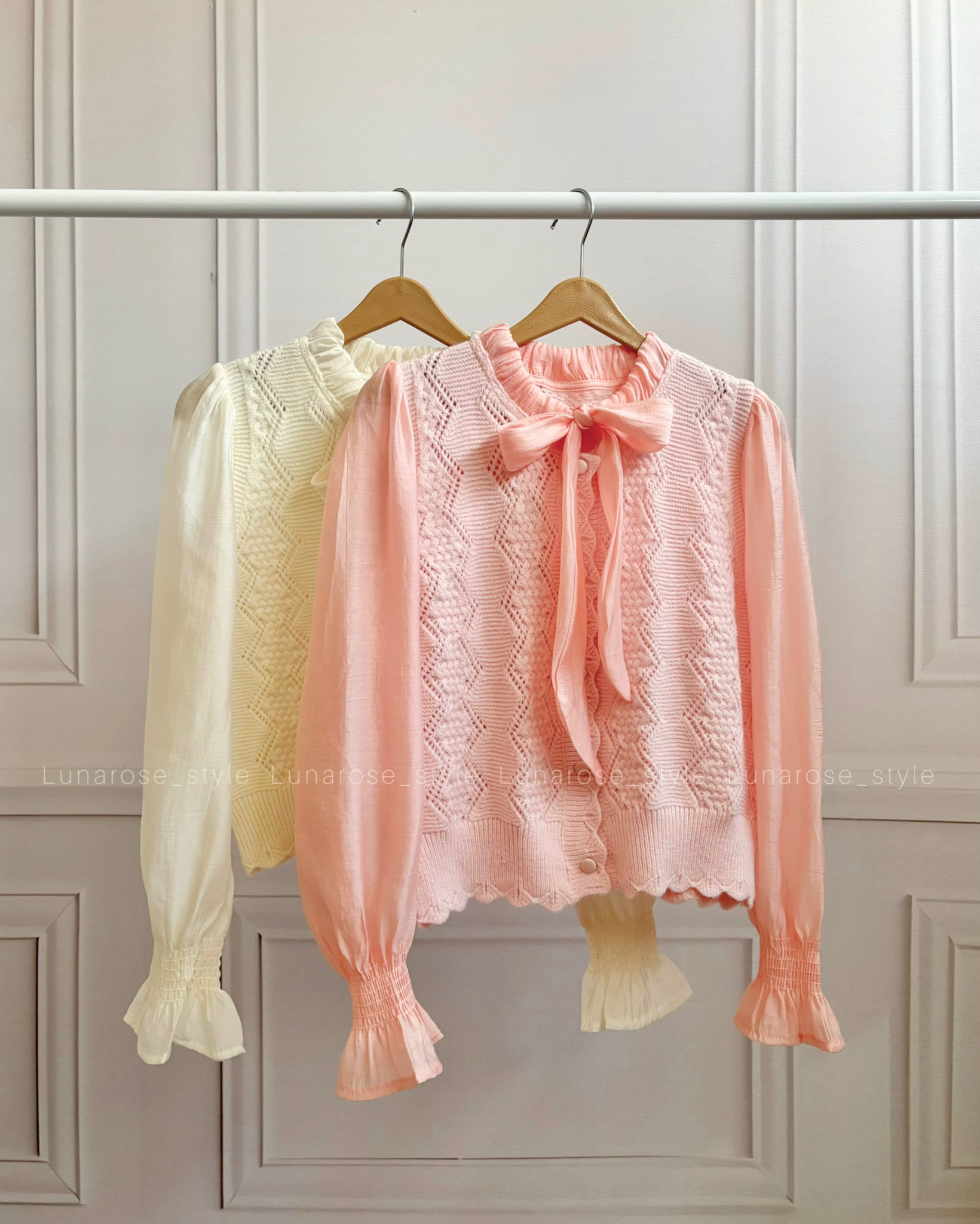 بافت وارداتی جنس آستین ها حریر دکمه ها باز میشوند فری سایز تا ۴۲-۴۴ در دورنگ شیری و صورتی