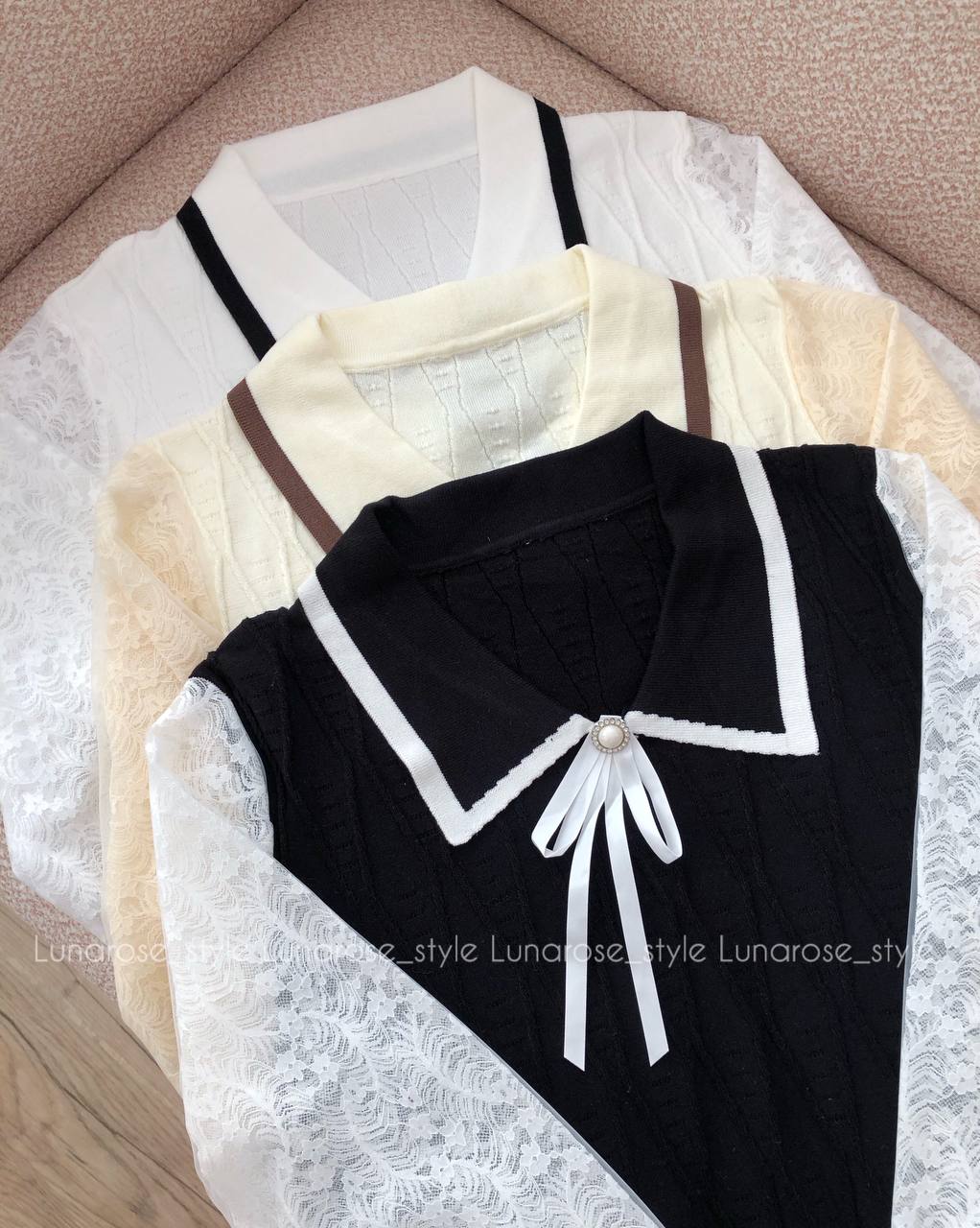 فری سایز ۳۶ تا ۴۲ کار وارداتی کیفیت عالی کاملا نرم و لطیف آستین بلوز طرح دار است پاپیون جلوی کار جدا میشود