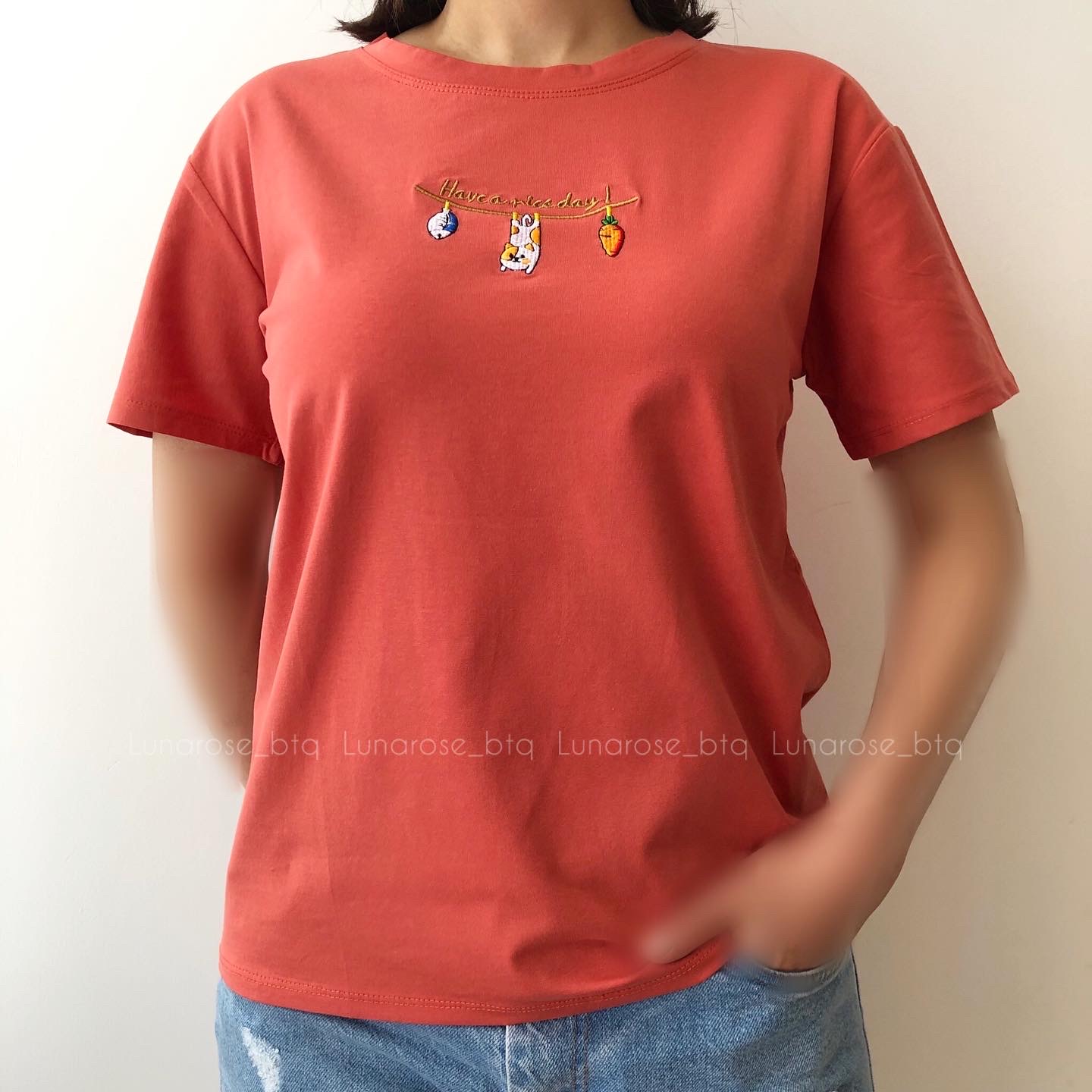 ➰تیشرت گلدوزی➰ جنس نخ پنبه وارداتی ۸ تا رنگ خوشگل داره فری سایز۳۶ تا ۴۴ جلوی کار گلدوزی کیوت داره