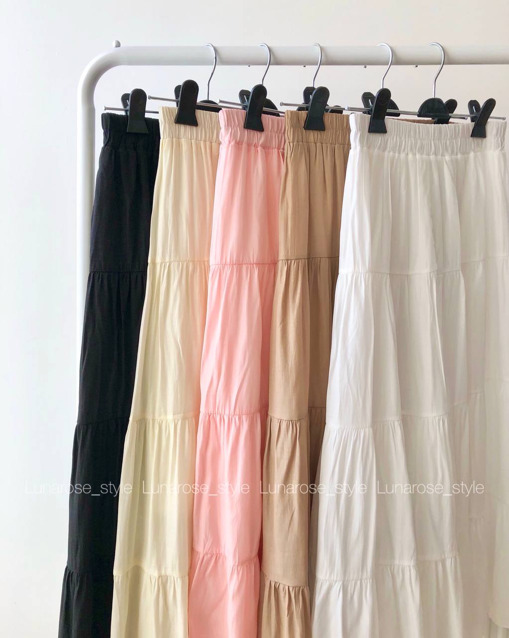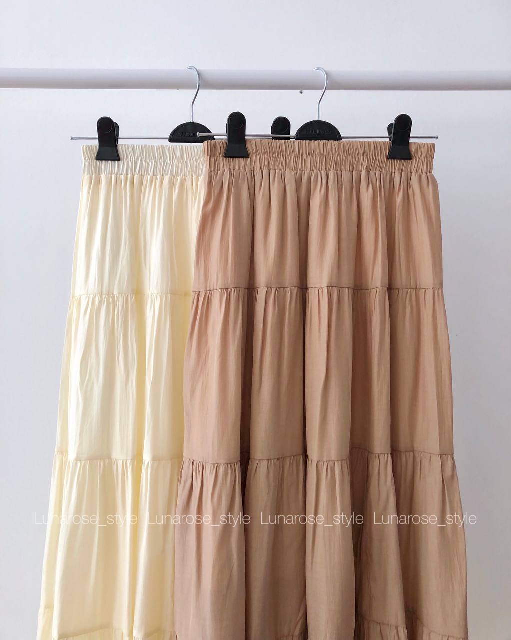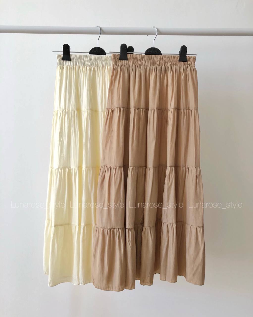 دامن نخ ابریشم فری سایز ۳۶ تا ۴۲ آستر دوزی شده رنگهای روشن سایه نمیدازد چیندار طبقه ای