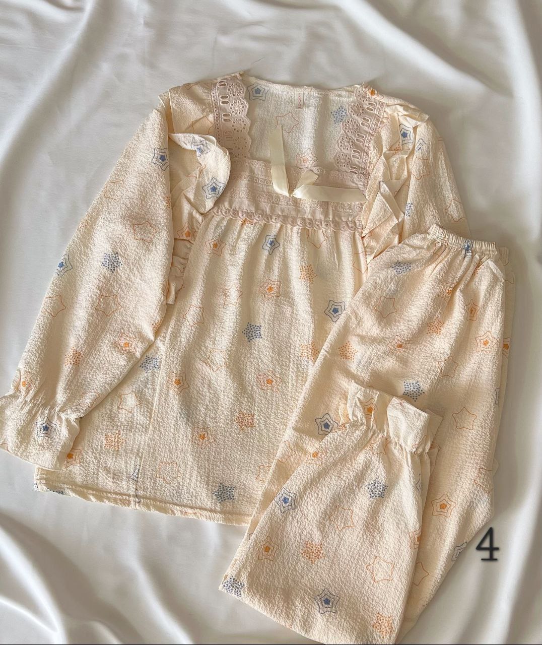 جنس کار نخ موسلین فری سایز 36 تا 44 (گاها46) سر آستین و دمپای شلوار کشدوزی شده تنخور کار در سایزهای کوچک آزاد است