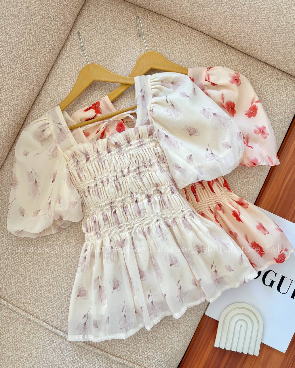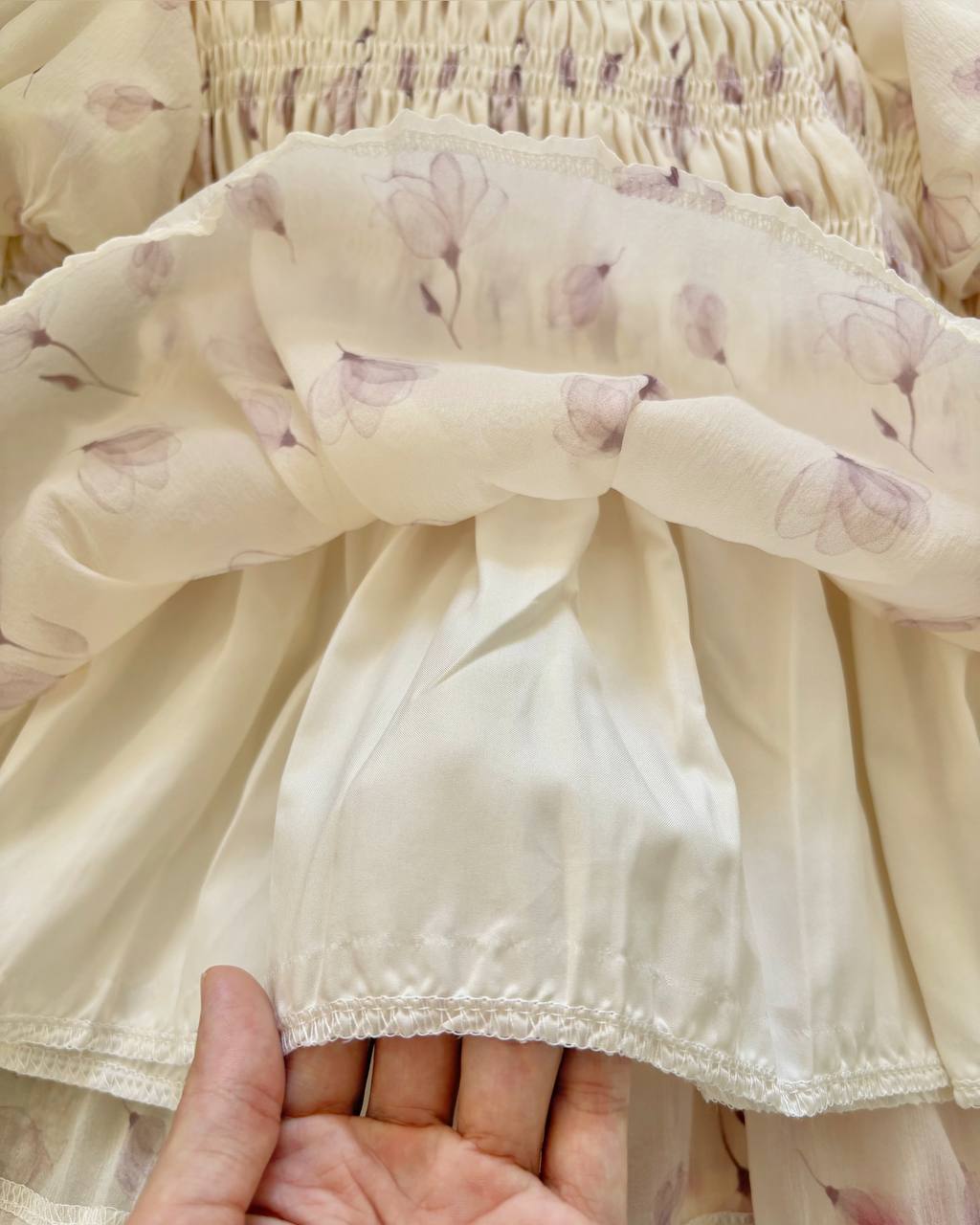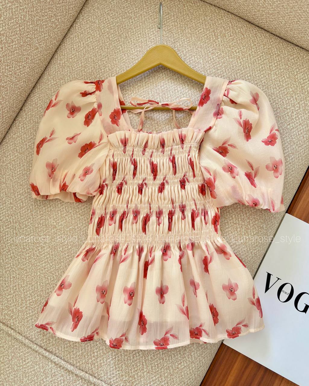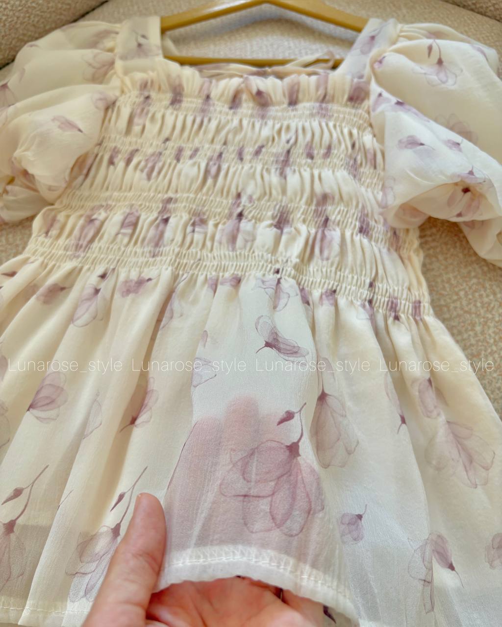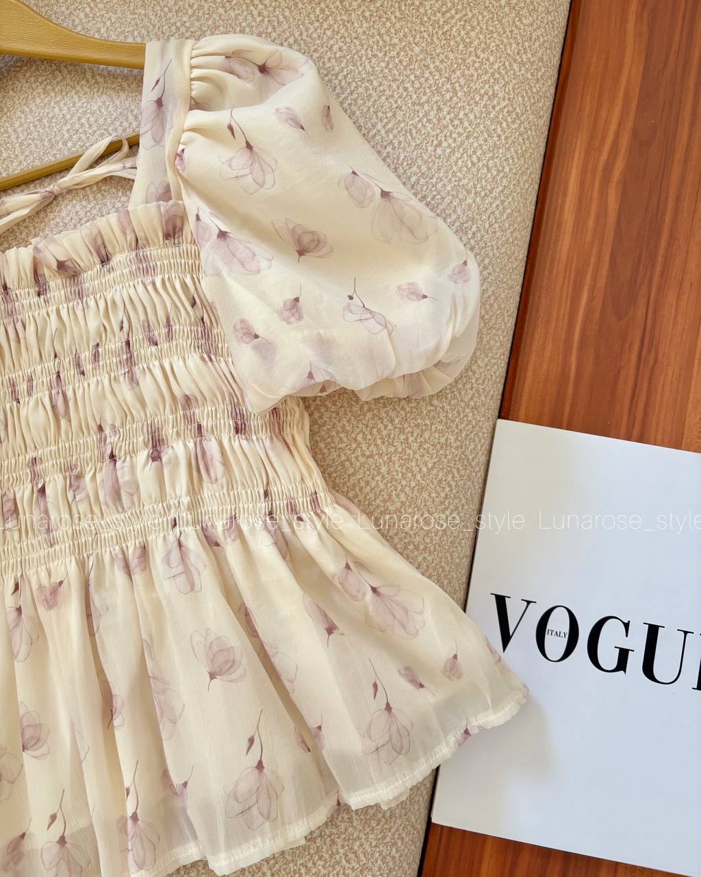 فری سایز ۳۶ تا ۴۲ کشدوزی شده بند ها پشت کار گره میخورن آستین پفی پارچه حریر آستردوزی شده