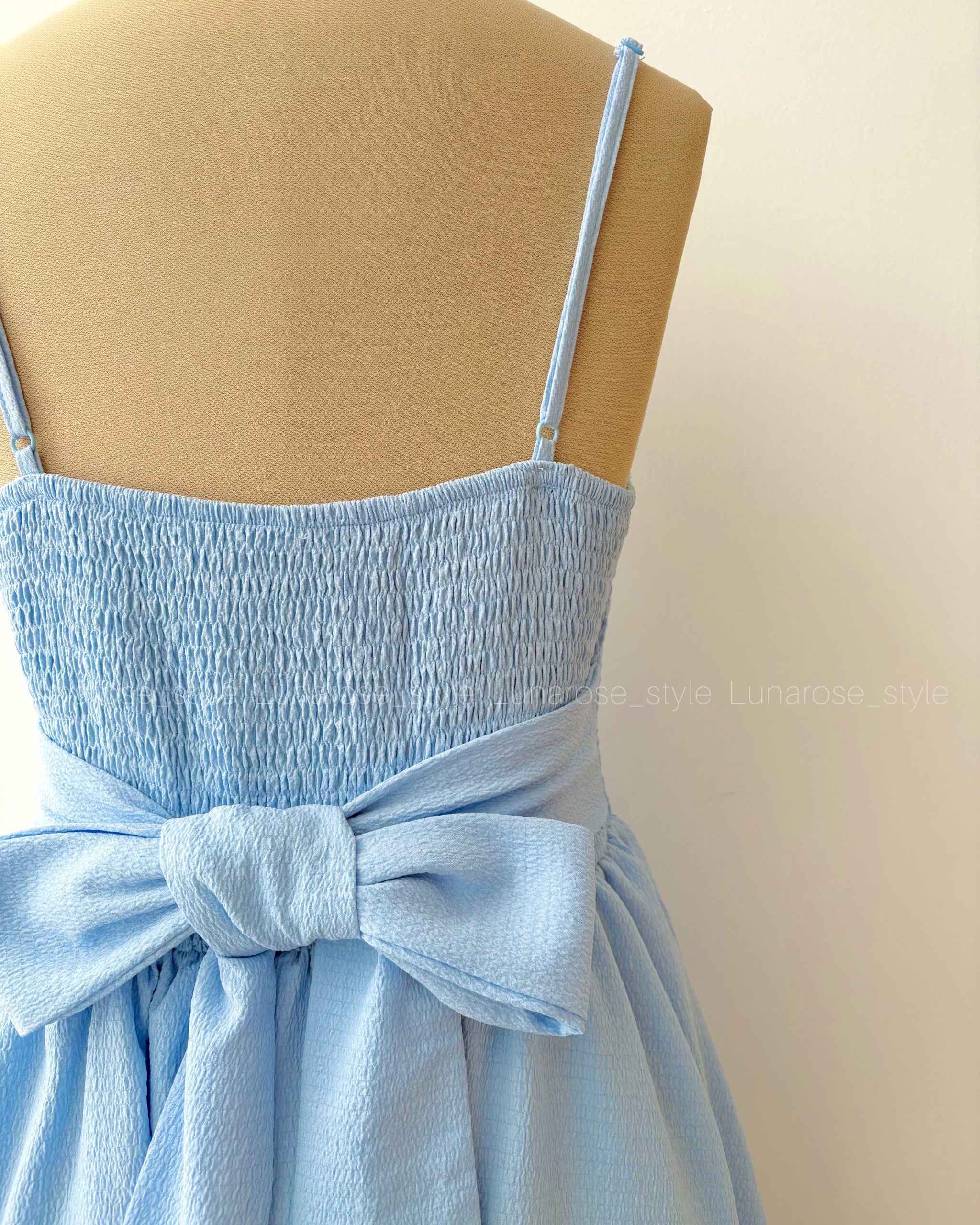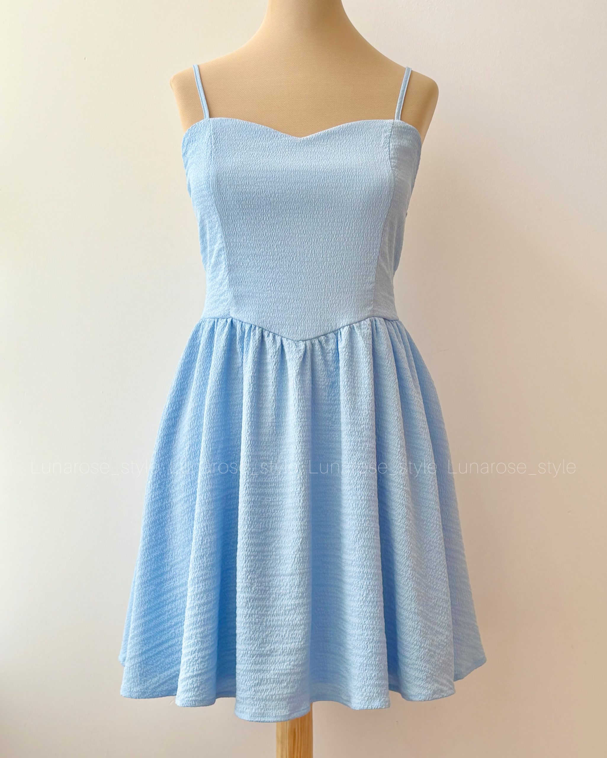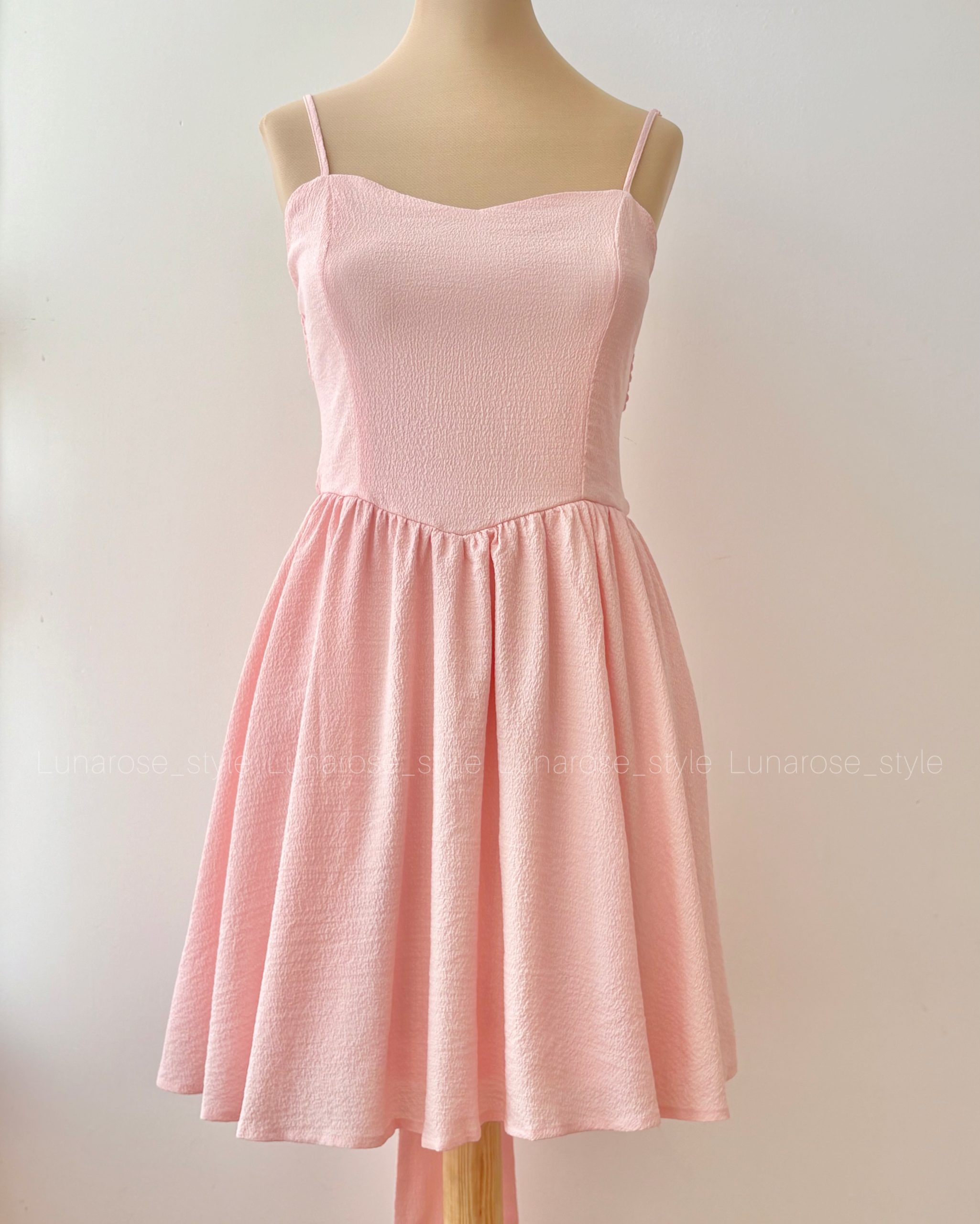 پیراهن برند shein پارچه پفکی پشت کار کشدوزی شده بند قابل تنظیم آستر دار بندها پشت کار بسته میشود