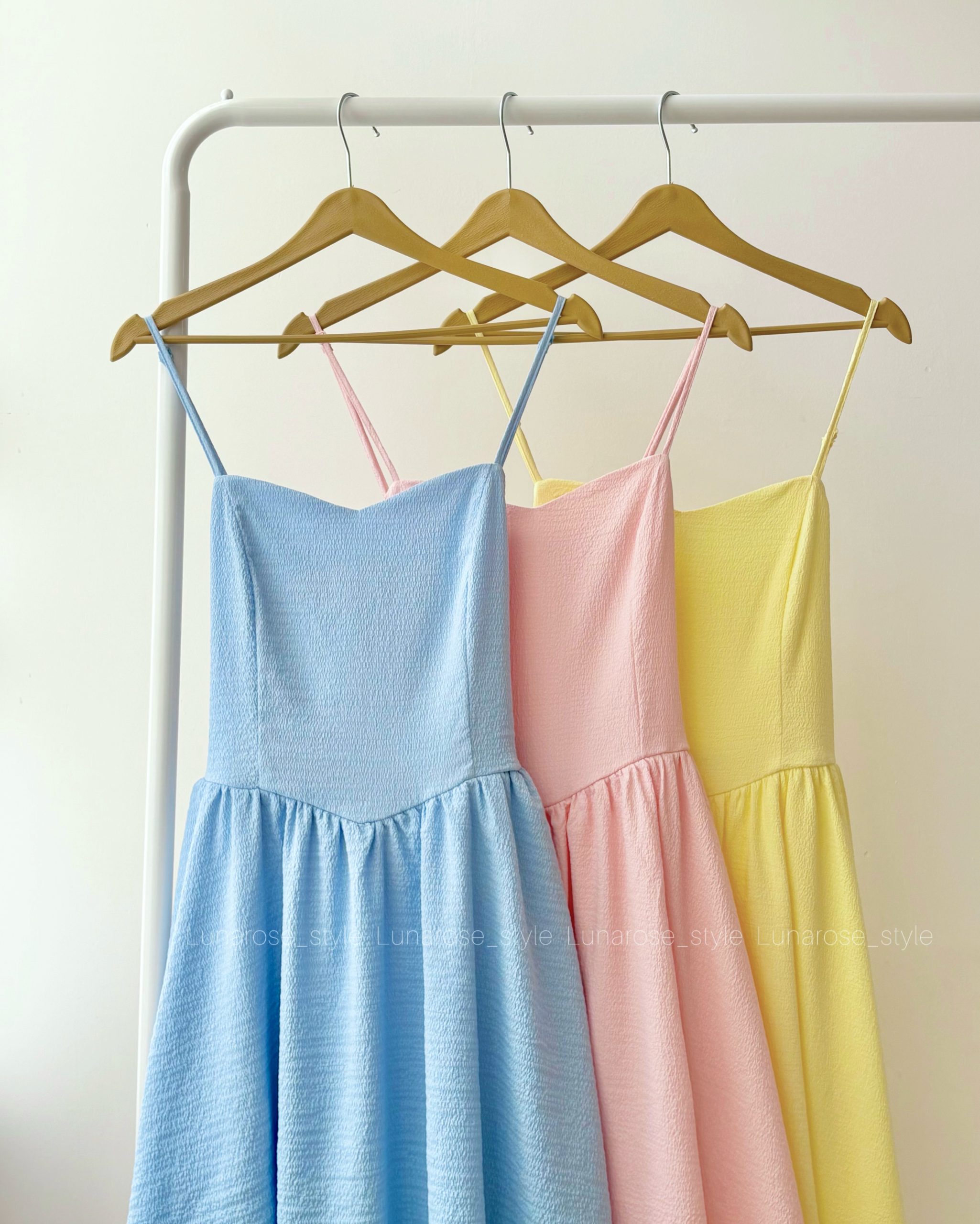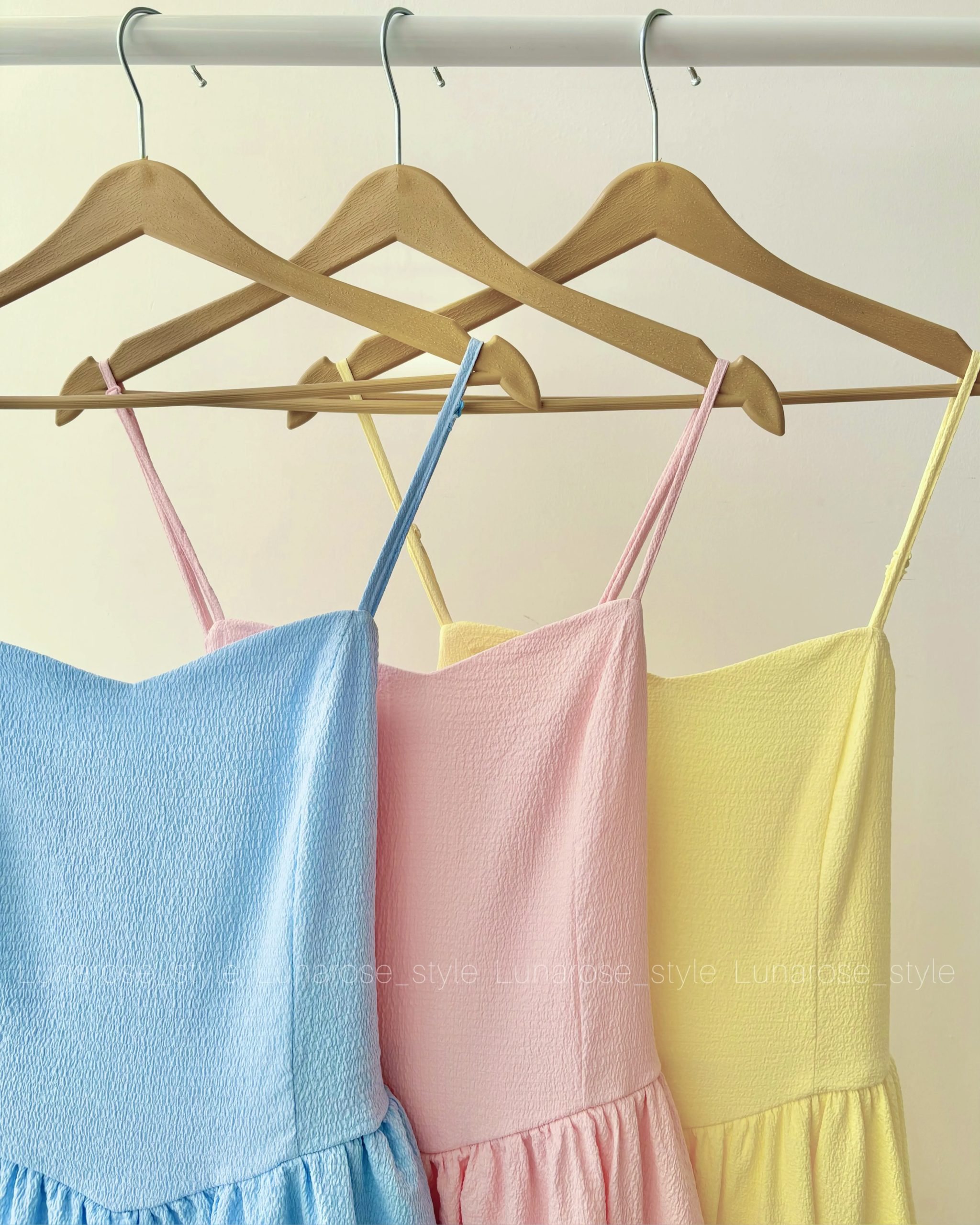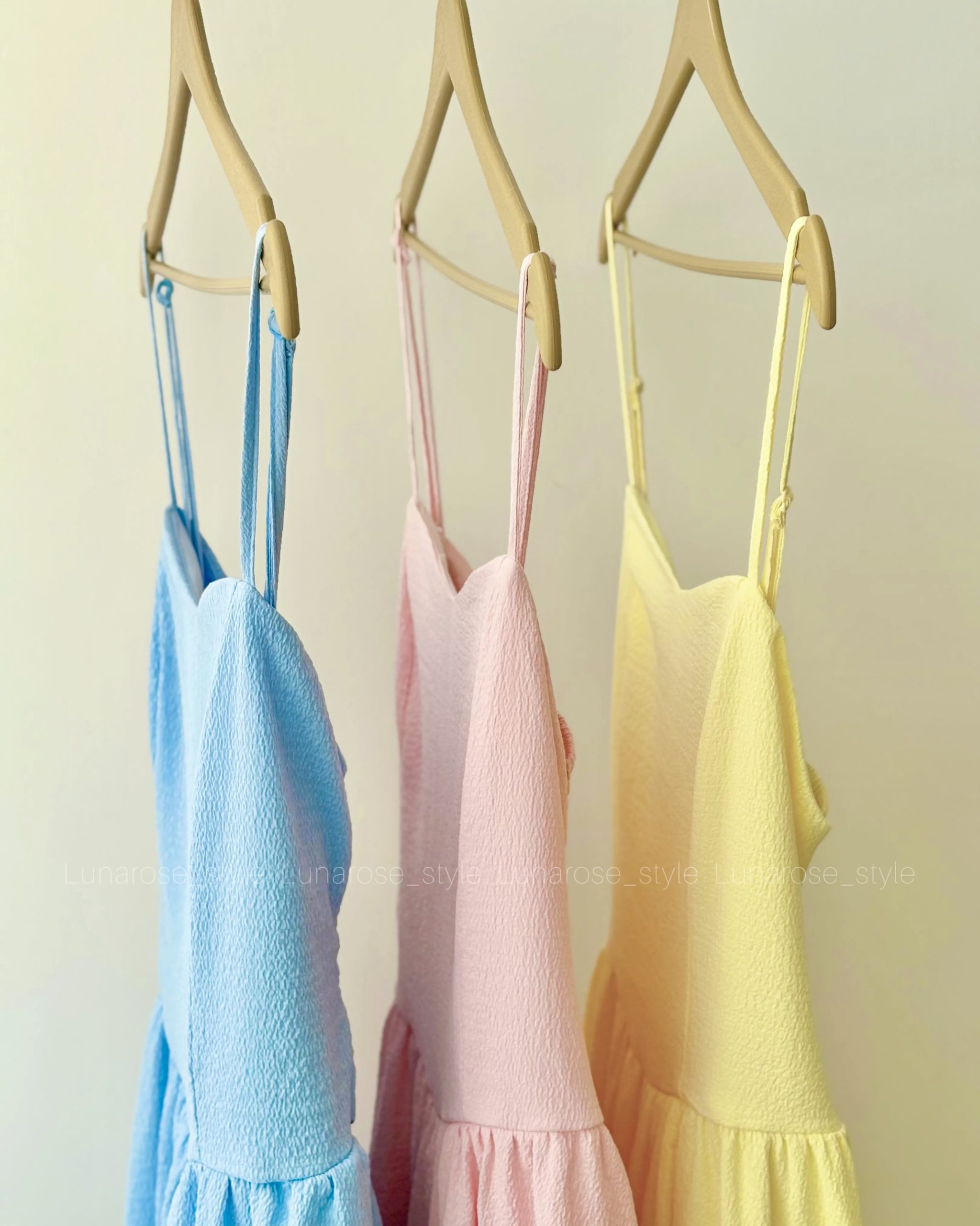 پیراهن برند shein پارچه پفکی پشت کار کشدوزی شده بند قابل تنظیم آستر دار بندها پشت کار بسته میشود