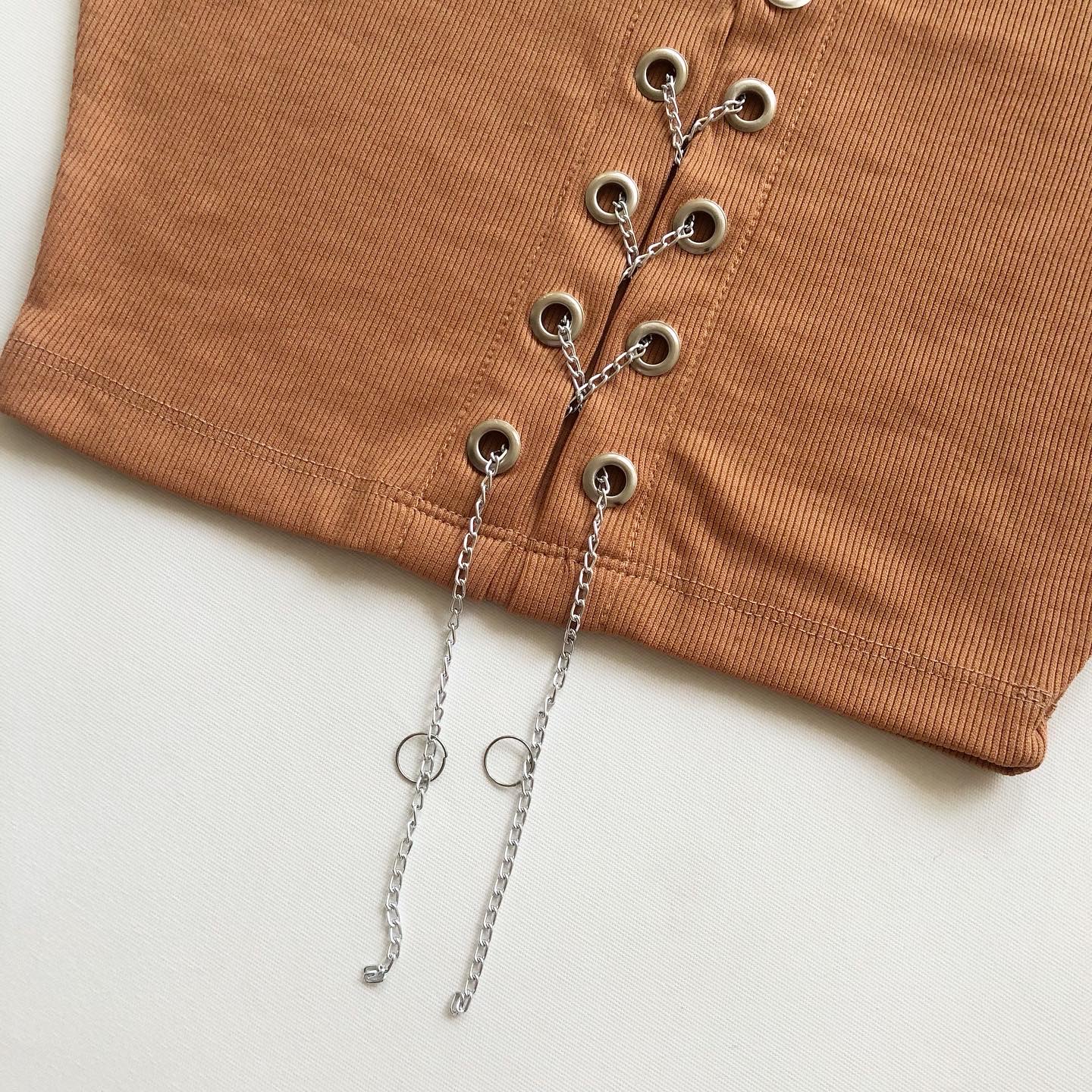 ➰کراپ جلو زنجیردار➰ جنس فانریپ فری سایزه و تا ۴۴ سایز میشه قسمت جلوی کار زنجیر داره تو تن خیلی خوشگل و راحته