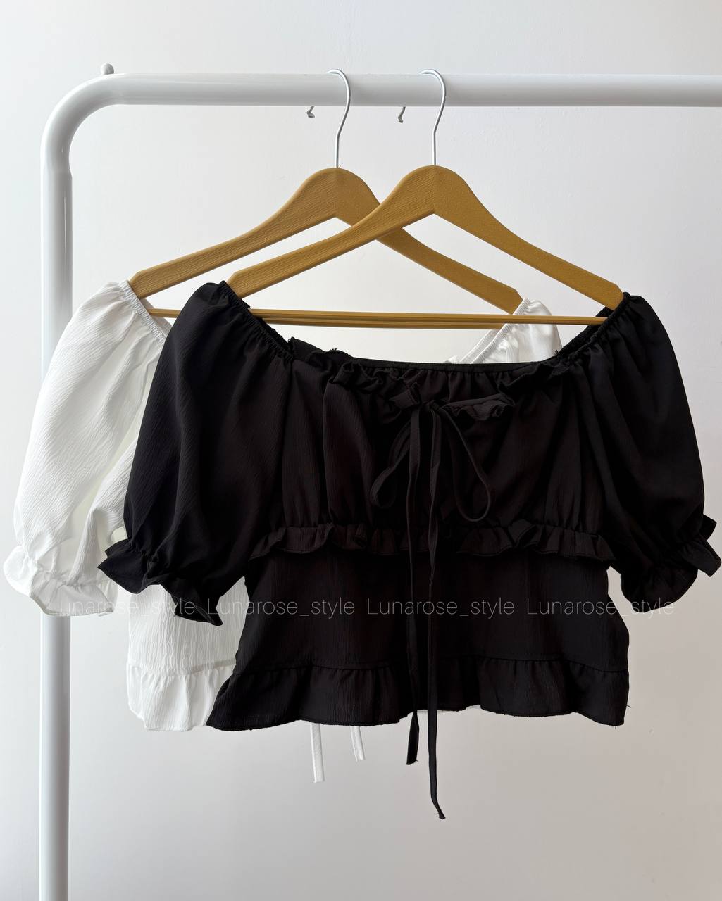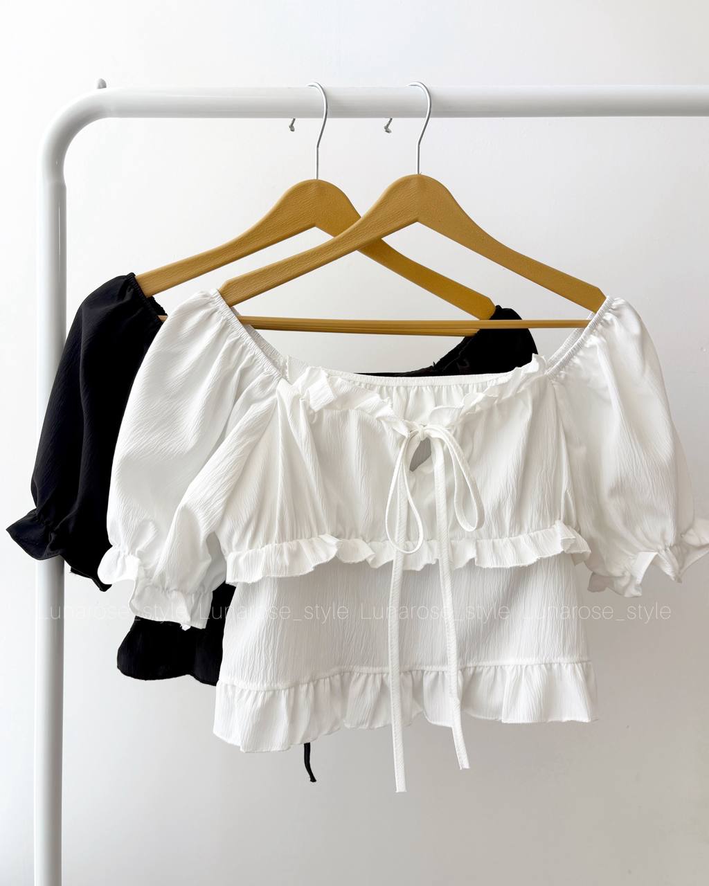 کراپ شومیز وارداتی بندها جلوی سینه و پشت گردن بسته میشوند فری سایز ۳۶ تا ۴۰ دو رنگ سفید و مشکی