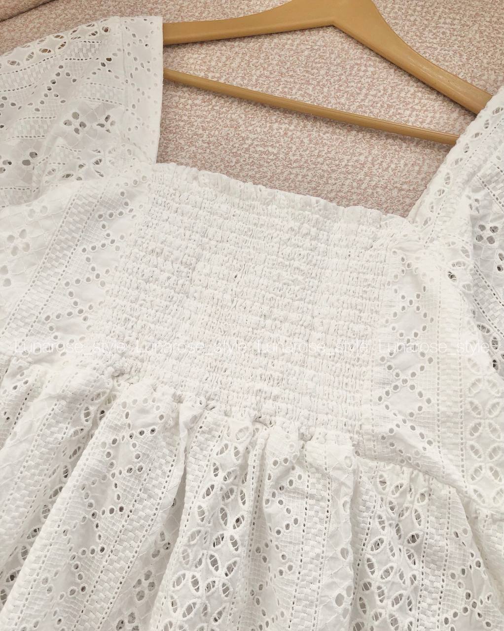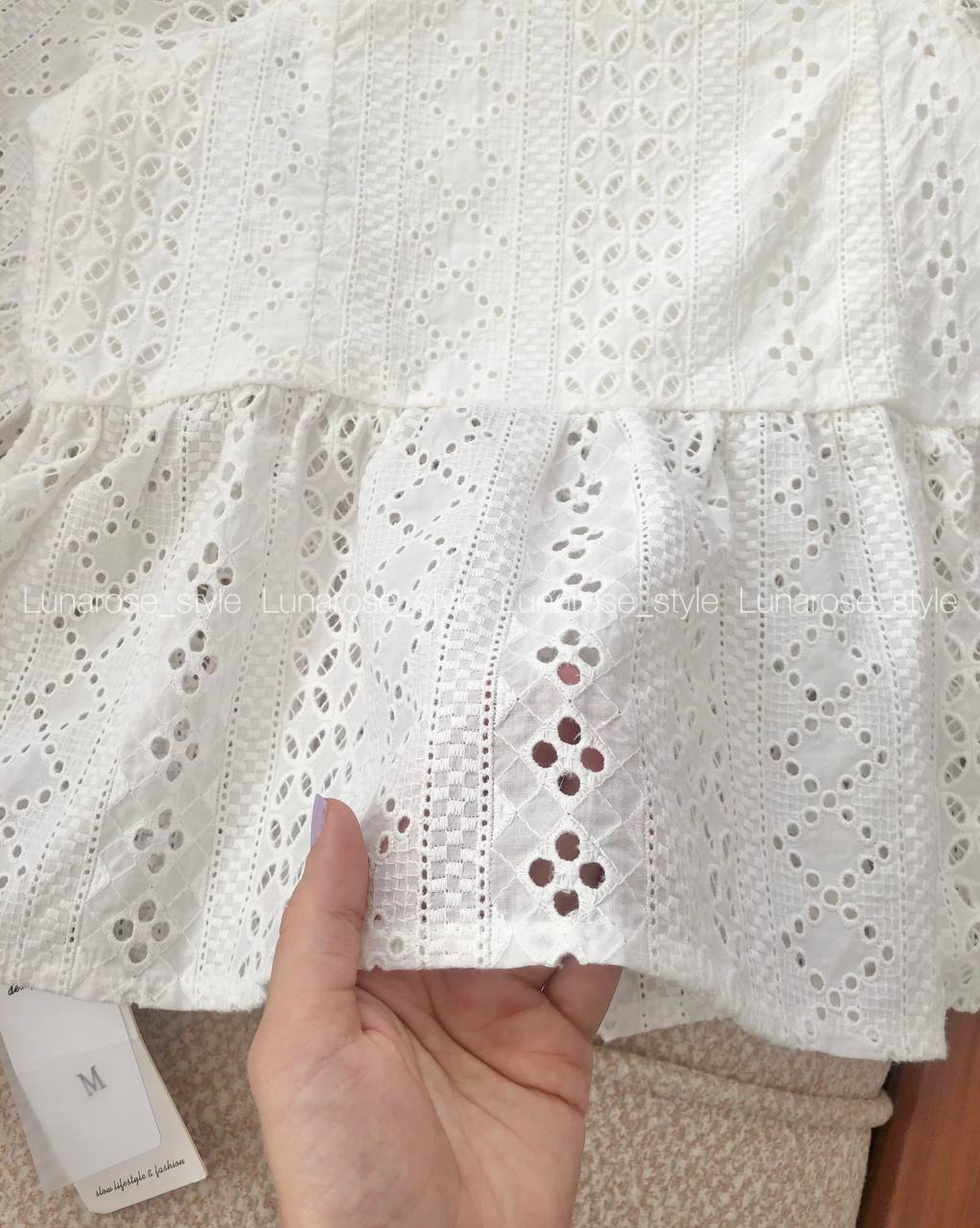 کار وارداتی پارچه خامه دوزی بالاتنه آستر دوزی شده پشت لباس کش دوزی شده یقه خشتی سایزبندی S,M,L