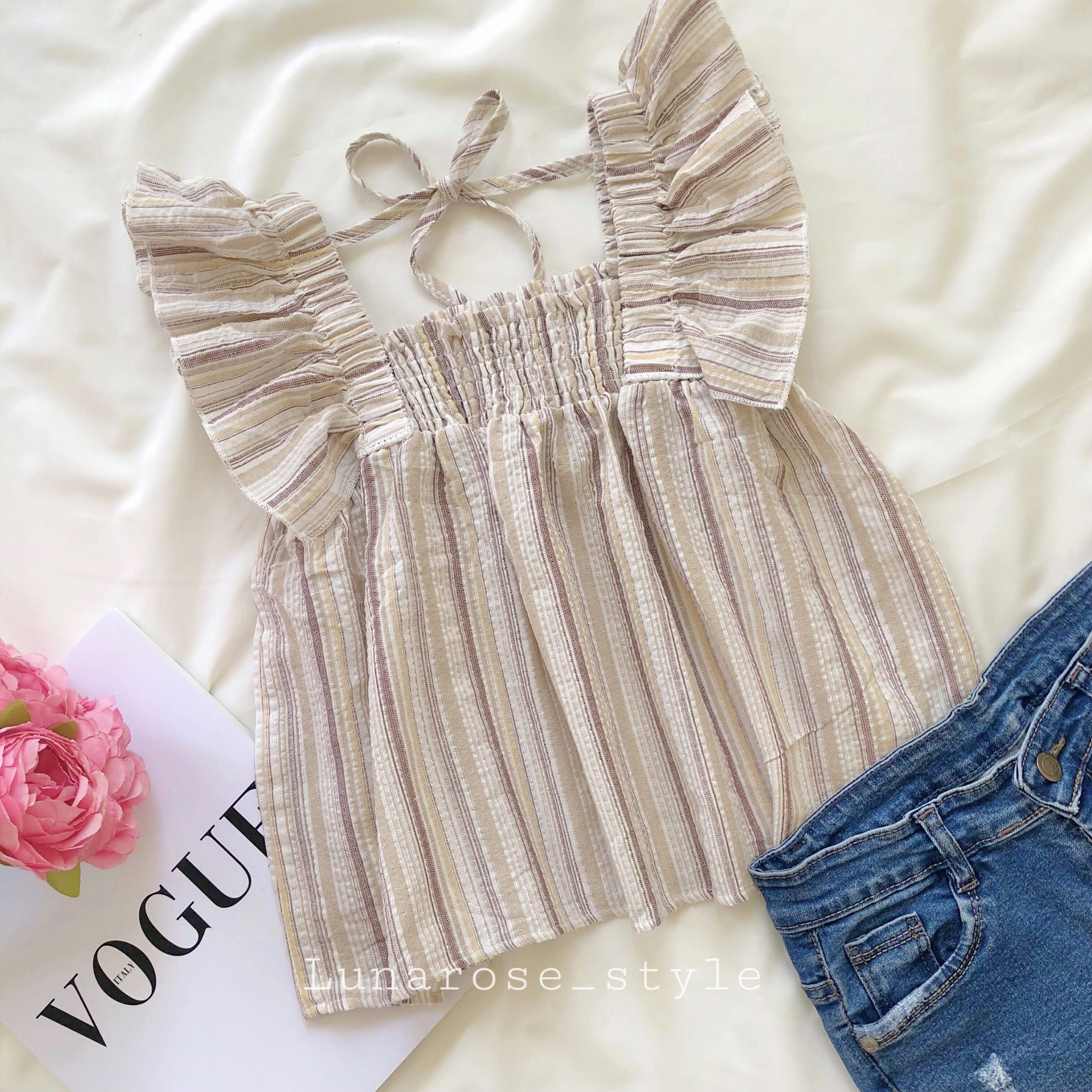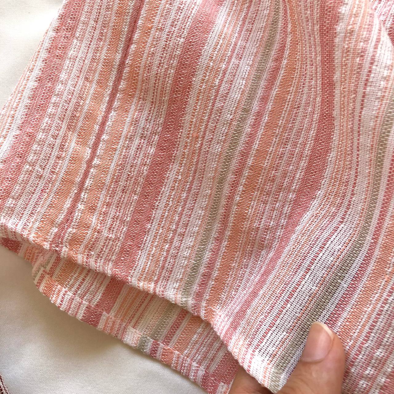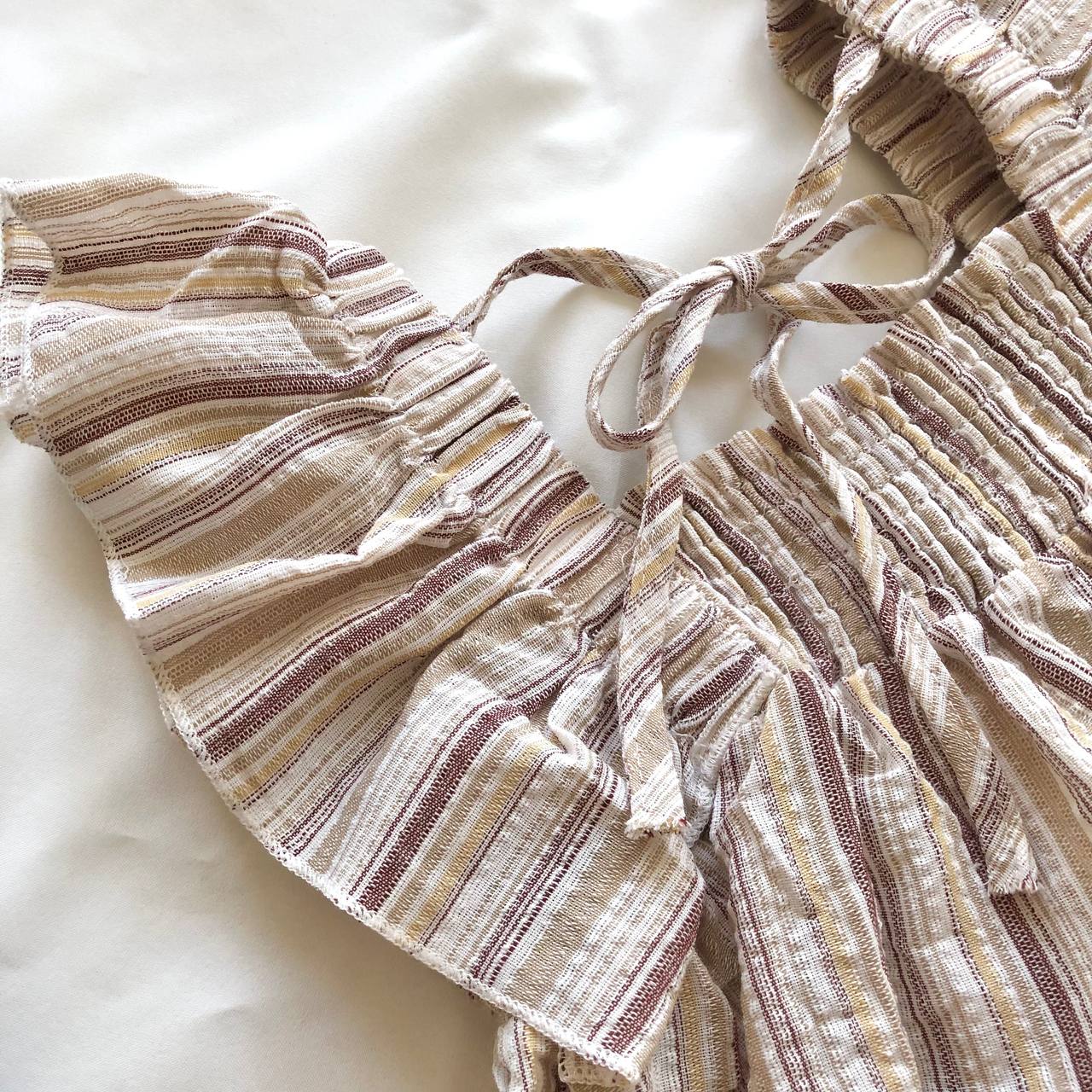 فری سایز 36 تا 42 آستین چیندار جلوی سینه کش دوزی شده پشت گردن بند داره جنس کار نخی